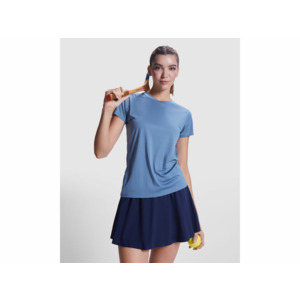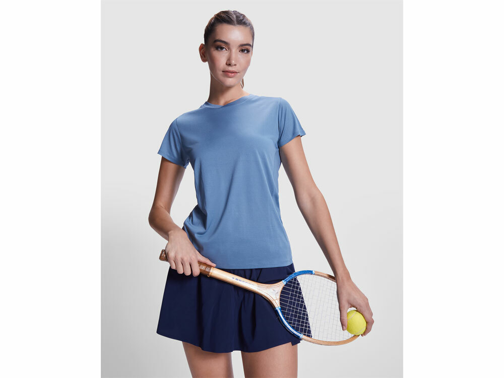 Женская технологическая футболка с короткими рукавами. Легкая ткань из переработанного полиэстера. · Воротник с перекрещенными деталями. · Кокетка сзади и рукава из дышащей ткани. · Направленные вперед и наклонные швы по бокам и плечам. · Закругленный низ. · Комбинация дышащих и эластичных тканей.