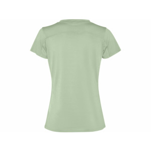 Женская технологическая футболка с короткими рукавами. Легкая ткань из переработанного полиэстера. · Воротник с перекрещенными деталями. · Кокетка сзади и рукава из дышащей ткани. · Направленные вперед и наклонные швы по бокам и плечам. · Закругленный низ. · Комбинация дышащих и эластичных тканей.