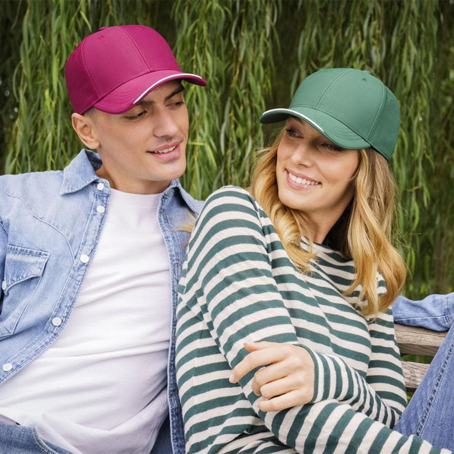 Плотная жаккардовая бейсболка ESTORIL с декоративным кантом по центру козырька. - 6 клиньев,- лобовой шов,- 6 вышивных люверсов для лучшей вентиляции,- изогнутый козырек с полной прострочкой,- контрастный кант в центральной части козырька,- застежка на липучке с пластиковой петлей.Цвет близкий к Pantone 2049 С. 58,5 см - средний размер, с помощью застёжки его можно увеличить или уменьшить до необходимого.