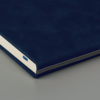 Ежедневник недатированный MuseЦвет обложки темно-синий, декоративная полоса, цвет серыйРазмер 130*210 мм, переплет твердыйОбложка термоактивный PU, с эффектом замшиБлок недатированный, в линейку, скругленные углыБумага кремовая, плотность 70 г м2Форзац нахцаз кремовые272 страницыЛяссе, 7 мм,в цвет обложкиУпаковка крафтовый сливбокс