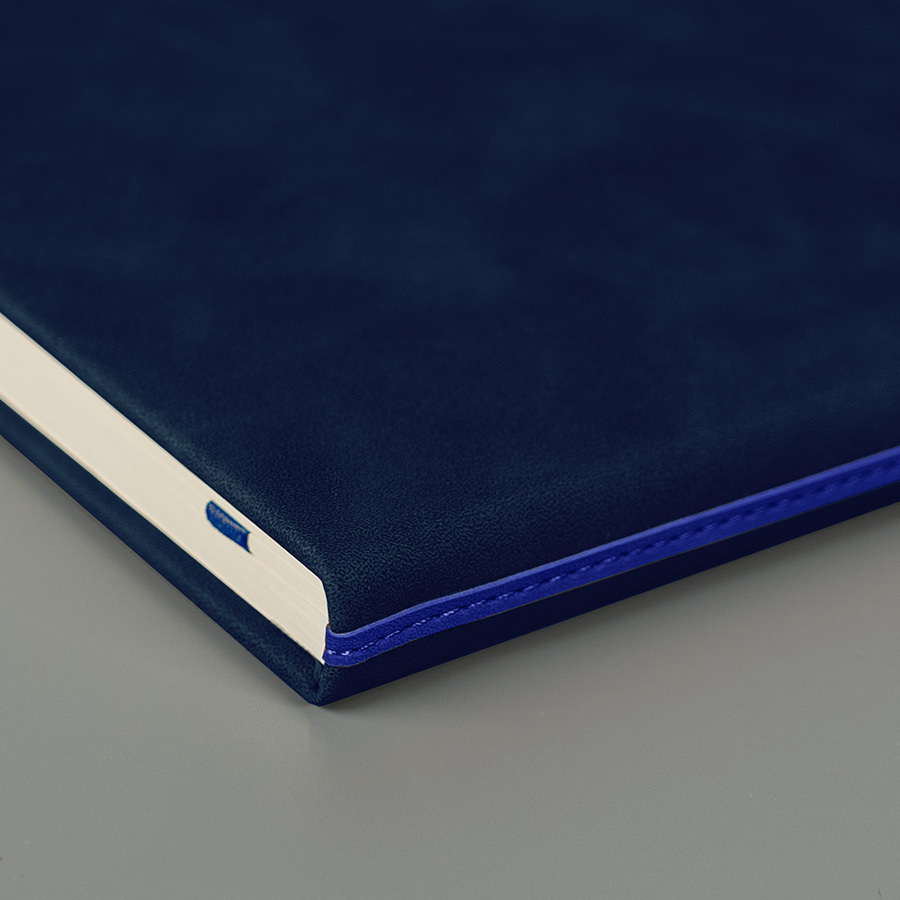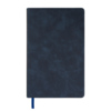Ежедневник недатированный MuseЦвет обложки темно-синий, декоративная полоса, цвет синий ройалРазмер 130*210 мм, переплет твердыйОбложка термоактивный PU, с эффектом замшиБлок недатированный, в линейку, скругленные углыБумага кремовая, плотность 70 г м2Форзац нахцаз кремовые272 страницыЛяссе, 7 мм, в цвет обложкиУпаковка крафтовый сливбокс