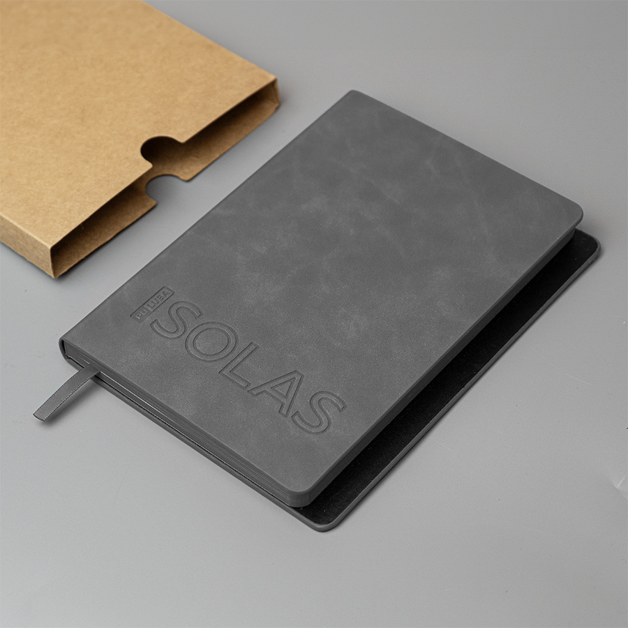 Ежедневник недатированный Solas, с магнитом для ручкиЦвет темно-серый, близкий к 425С, магнит и обрез в цвет обложкиРазмер 145*210 мм, переплет твердыйОбложка термоактивный PU, с эффектом замшиБлок недатированный, в линейку, скругленные углыБумага кремовая, плотность 70 г м2Форзац нахцаз кремовые256 страницЛяссе, 7 мм, в цвет обложкиУпаковка крафтовый сливбоксРучка в комплект не входит