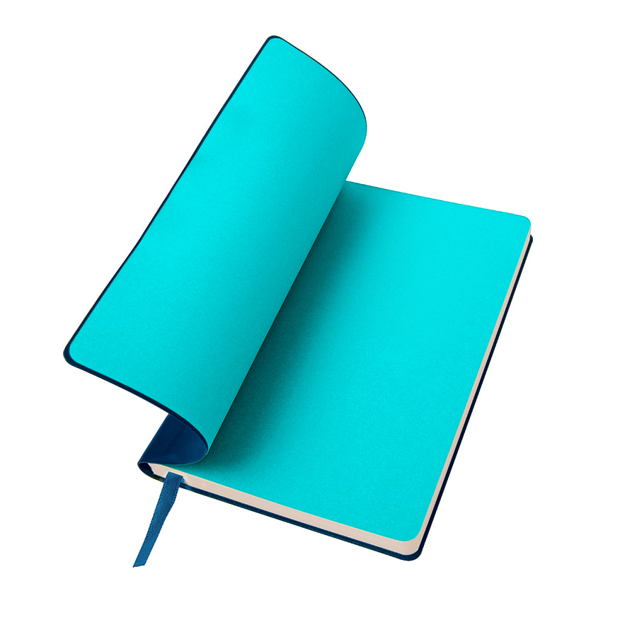 Ежедневник недатированныйс мягкой термоактивной обложкой и популярной комбинацией цветов Термоактивный PU материал Velvet Цвет обложки, близкий к Pantone 534C Цвет форзаца, близкий к Pantone Blue 298U Внутренний блок 256 страниц в линейку Идеально скругленные углы блока Кремовая FSC бумага 70 г м2 Ляссе в тон обложки Индивидуальная упаковка: крафтовый сливбокс