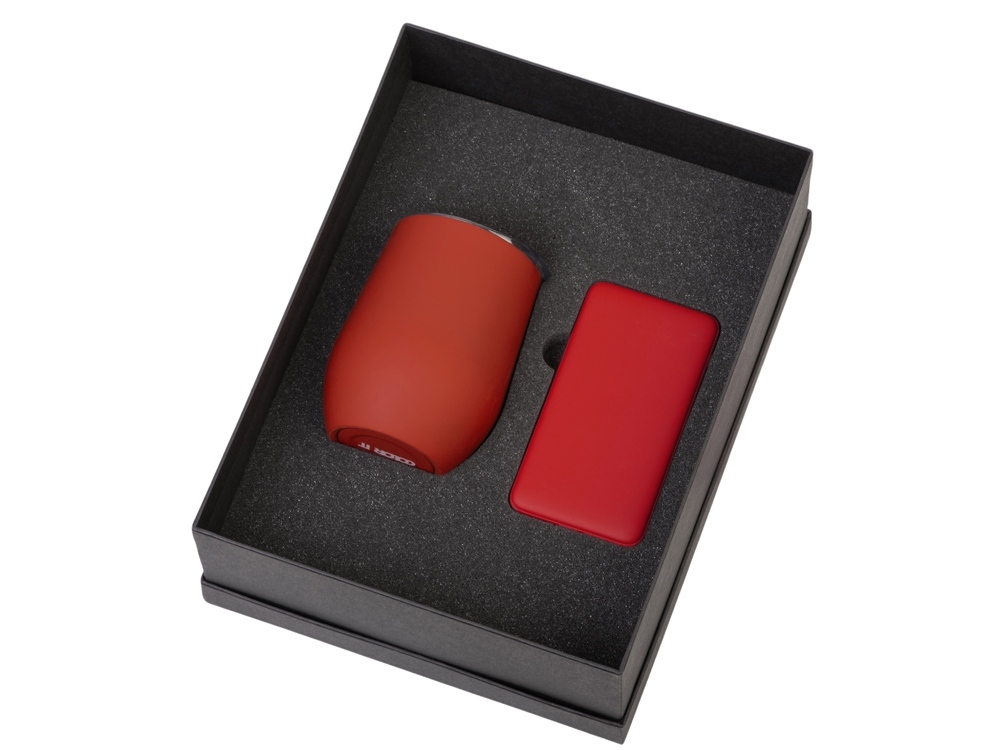 Подарочный набор с термокружкой и повербанком С2, 10000 mAh, красный в ассортименте цветов, материалов и моделей