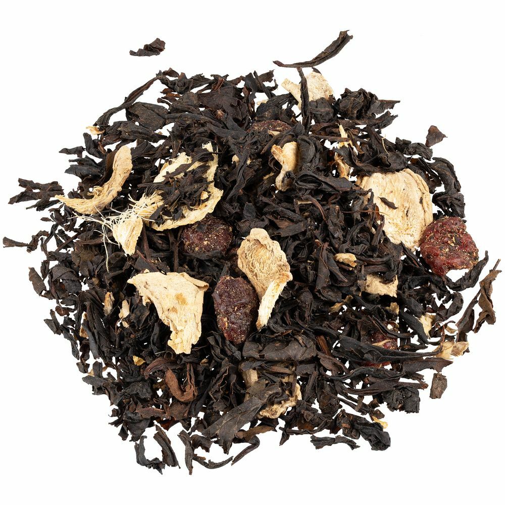 Черный крупнолистовой чай с кусочками имбиря и сублимированной клюквой обладает многогранной палитрой вкуса и аромата. В состав чая входят только натуральные ингредиенты, а чайные листья предварительно вымачиваются в соке имбиря: вкус напитка становится особо насыщенным и обогащенным. «Сокочай» станет прекрасным подарком для любителей необычных вкусовых сочетаний и здорового образа жизни.Состав: чай черный с имбирем и соком имбиря (чай черный байховый крупнолистовой, кусочки имбиря, сок имбиря), клюква сушеная, ароматизатор натуральный «Клюква».