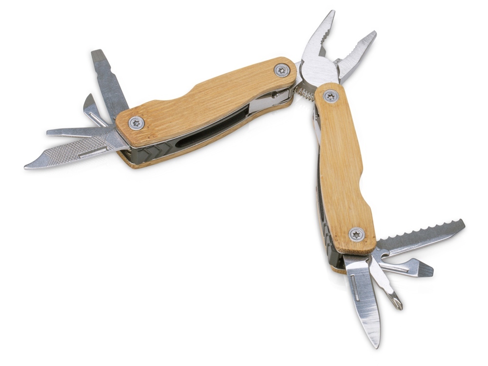 Набор состоит из двух предметов: Мультитул-нож для повседневных нужд (состоит из открывалок для банок и бутылок, плоской отвертки, пилки, штопора, ножа и ножниц); Мультитул-плоскогубцы для ремонта (состоит из плоскогубцев, открывалок для бутылок и банок, крестовой и 3-х плоских отверток, ножа, пилы по дереву и напильников по дереву и металлу). Оба мультиинструмента сочетают в себе текстуры металла и теплого натурального бамбука, благодаря чему хорошо ложатся в руку. • легкие и компактные мультитулы на все случаи жизни • мультитул-нож для повседневного ношения, мультитул-плоскогубцы для бытовых дел • качественные и долговечные материалы • подарочная коробка