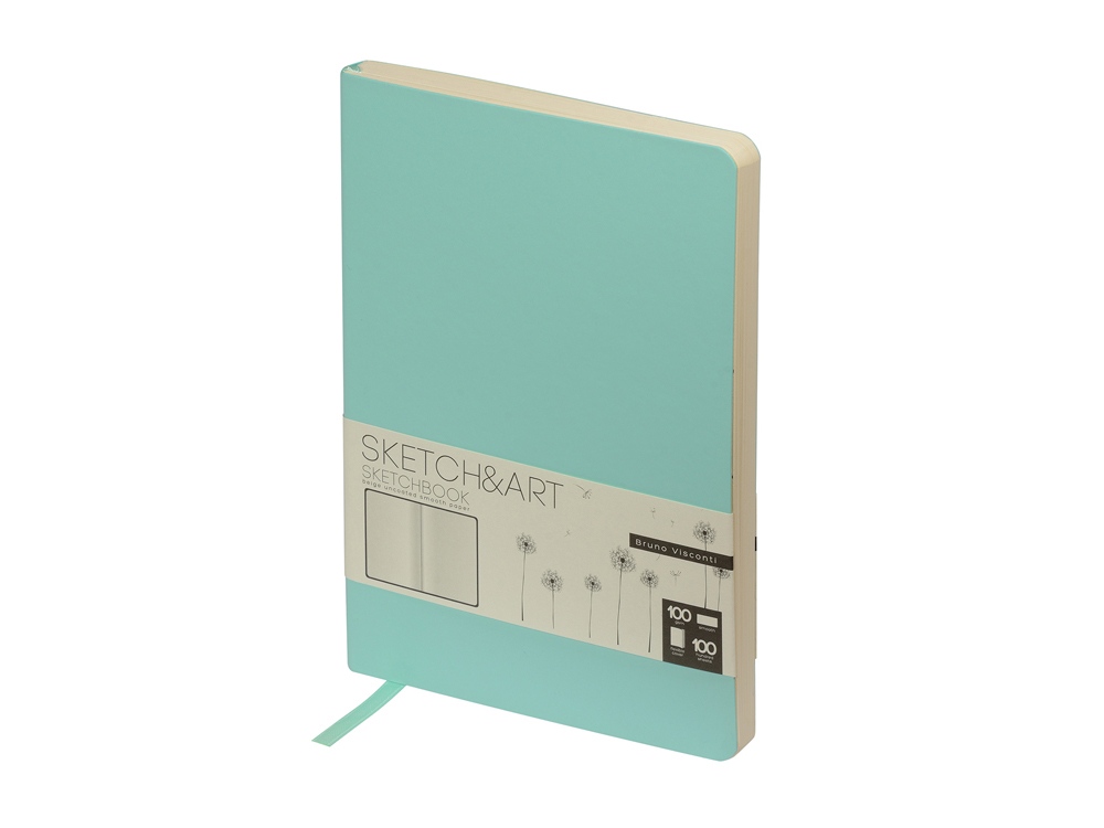Скетчбук "Sketch & Art" в мягком переплете 140х210 мм, 100 л. бежевой бумаги 100 гр., мятный в ассортименте цветов, материалов и моделей