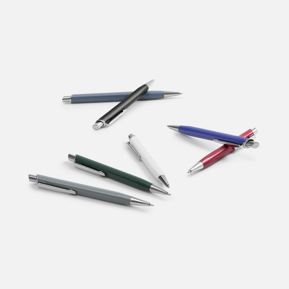 Металлическая ручка с матовым корпусом и хромированными деталями.