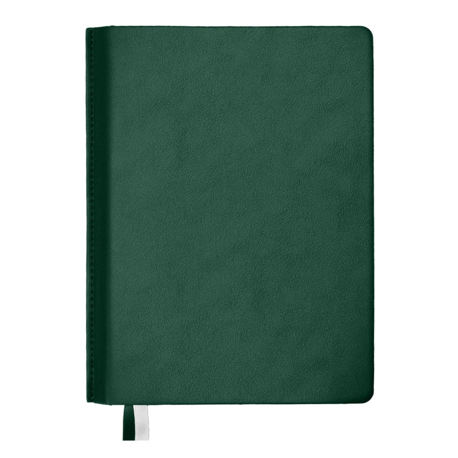 Ежедневник недатированный MaveЦвет зеленый,близкий к Pantone 343CРазмер 155*210 мм, переплет мягкийДекоративная строчка по корешку в цвет обложки Обложка - не термоактивный PU с эффектом кожи наппаБлок недатированный, в линейку, скругленные углыБумага кремовая, плотность 70 г м2Форзац нахцаз 5 U COOL GREY256 страницДвойное ляссе, 7 мм, белое +в цвет обложкиУпаковка крафтовый сливбокс+ бумага