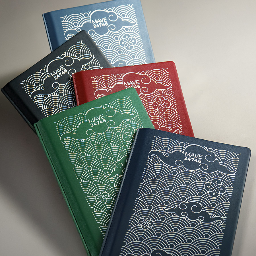 Ежедневник недатированный MaveЦвет темно-синий, близкий к Pantone 2379CРазмер 155*210 мм, переплет мягкийДекоративная строчка по корешку в цвет обложки Обложка - не термоактивный PU с эффектом кожи наппаБлок недатированный, в линейку, скругленные углыБумага кремовая, плотность 70 г м2Форзац нахцаз серые 5 U COOL GREY256 страницДвойное ляссе, 7 мм, белое+в цвет обложкиУпаковка крафтовый сливбокс+ бумага