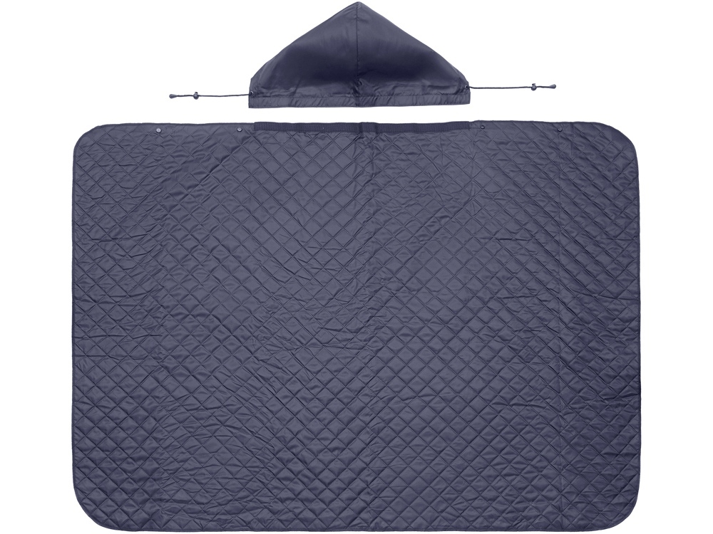 Плед 2-в-1 можно использовать как непромокаемое покрывало на землю и как согревающую и непромокаемую накидку во время пикника на природе. С одной стороны пледа водоотталкивающее покрытие, с другой - мягкий флис. На внутренней стороне из флиса приятно и тепло сидеть, а наружная сторона из полиэстера с водоотталкивающим покрытием не позволяет пледу намокнуть или сильно испачкаться. Для больше удобства использования пледа во время дождя в комплекте идет капюшон, который фиксируется с помощью " липучки". Накинув плед на плечи, застегните его на кнопки вверху и наденьте капюшон. Вы не промокните во время неожиданного дождя! В комплекте идет мешок для хранения, который можно использовать для нанесения вашего логотипа.