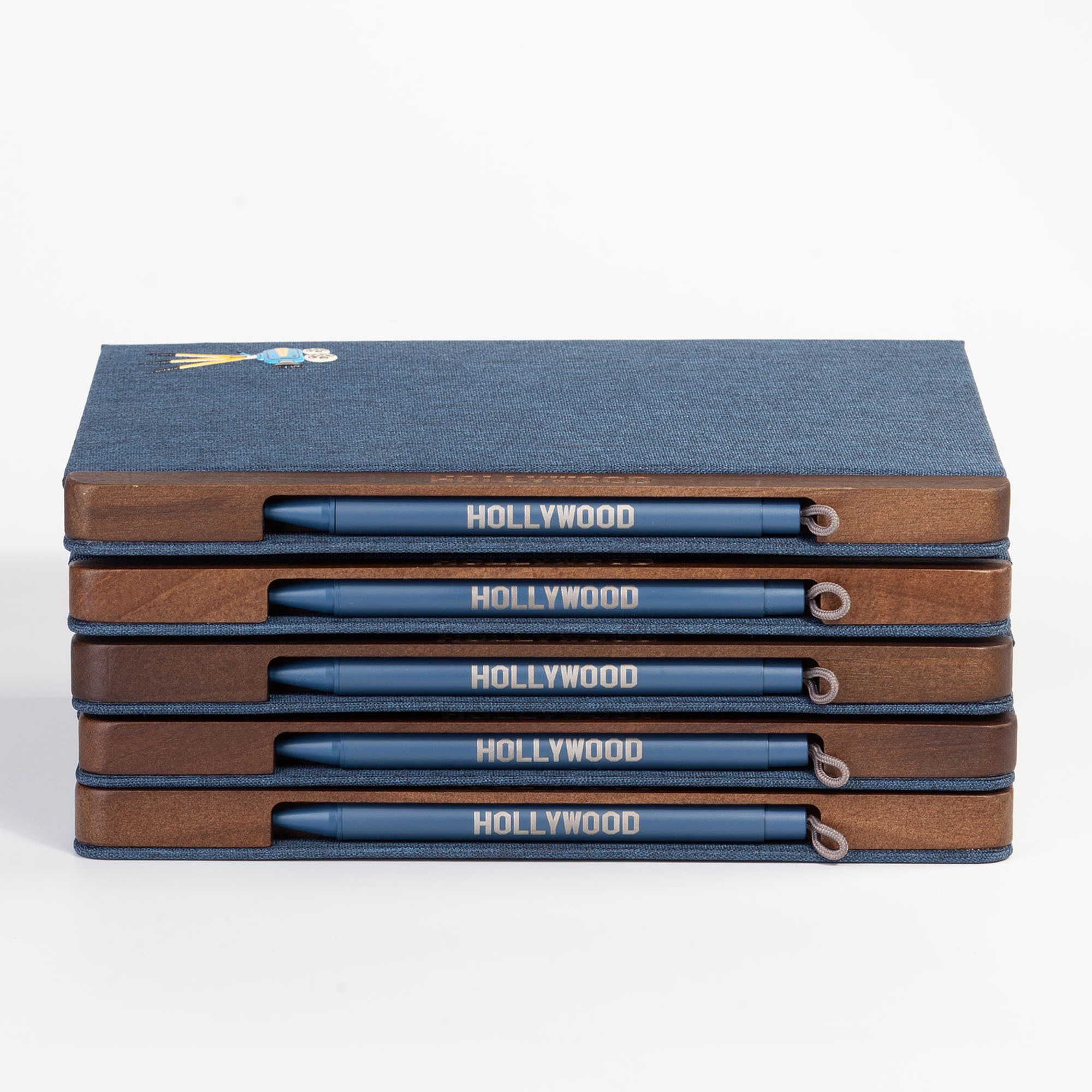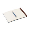 Невероятно оригинальная конструкция набора 2 в 1 - металлическая ручка скрыта и плотно держится в магнитном пенале из натурального дерева, закрепленном на обложке блокнота. При этом ручку легко извлечь, просто потянув за петельку на нажимной кнопке.