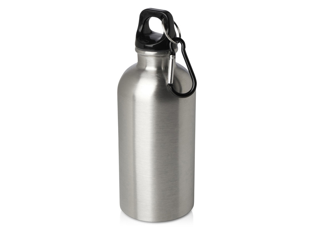 Одностенная бутылка для воды с карабином Oregon, изготовленная из нержавеющей стали, сертифицированной по стандарту RCS, объемом 400 мл - Серебряный в ассортименте цветов, материалов и моделей