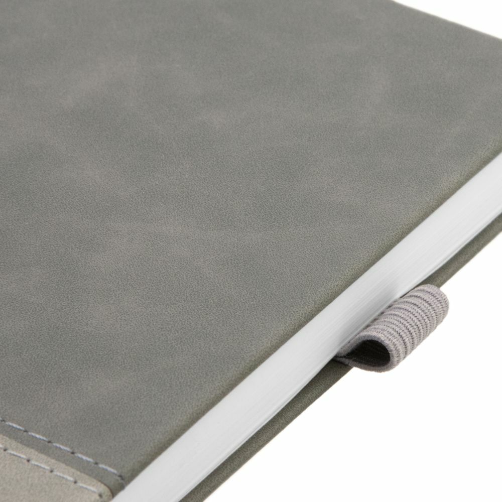 Ежедневник с твердой обложкой, без поролона, со сшивкой материалов Nubuck Touch серый СС, и Nubuck Touch тёмно-серый ЕЕ., дополнен двойным ляссе и петлей-резинкой для ручки.