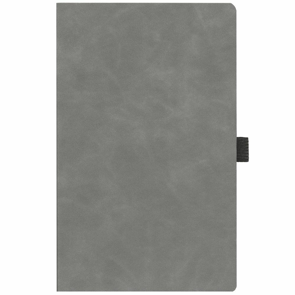 Ежедневник с гибкой обложкой, выполнен из материала Nubuck Touch, серый СС, дополнен ляссе и петлей-резинкой для ручки черного цвета.