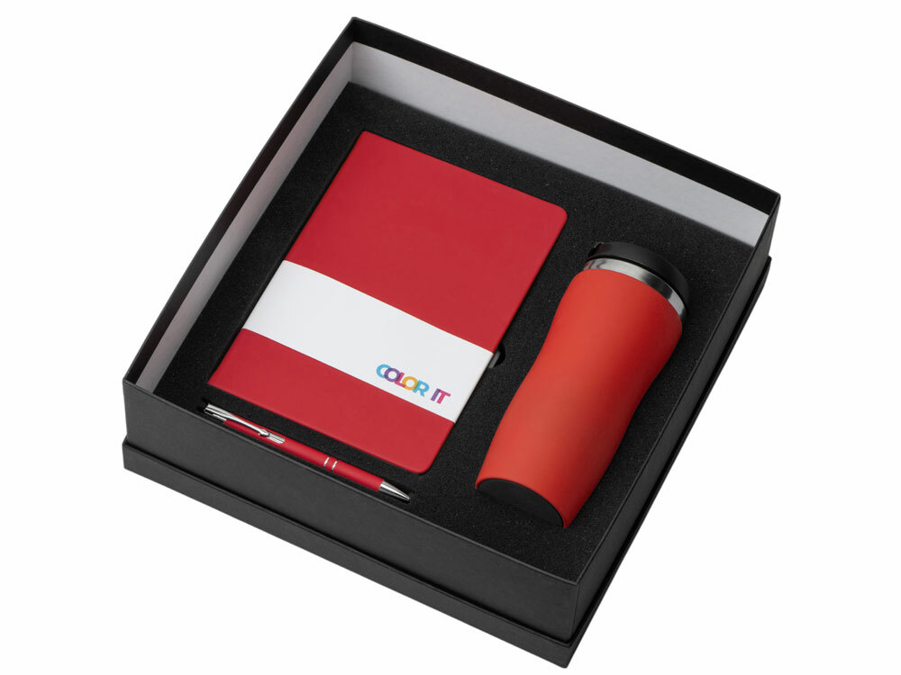 Color It — линейка, в которую входят хиты мерча в десяти самых популярных цветах. Еще никогда собрать сет под свой брендбук не было так просто. Широкая цветовая палитра серии позволяет создать идеальный набор в едином оттенке Pantone. Все товары имеют тактильно приятное покрытие софт-тач. Сет поставляется в коробке: мы продумали все, включая подарочную упаковку, за вас — осталось нанести лого! Термокружка оснащена плотно завинчивающейся крышкой, которая исключает проливание содержимого. Откидной клапан позволяет пить, не снимая крышку. Сохранение температуры осуществляется благодаря вакуумной изоляции и двойным стенкам. Бизнес-блокнот в гибкой обложке имеет ляссе в тон обложки и среза. Бумажный блок разлинован в линейку и выполнен из бумаги, полученной из древесины из специальных восполняемых лесных ресурсов, имеет сертификат FSC. Шариковая ручка имеет сменный стержень, поэтому такой мерч прослужит дольше обычной одноразовой ручки, долго напоминая о вас клиентам. - софт-тач покрытие на всех предметах набора; - объём термокружки: 350 мл; - блокнот А5 128 листов; - ручка с необычным слайдером; - подарочная упаковка из картона, оклеенного дизайнерской бумагой уже включена в набор.