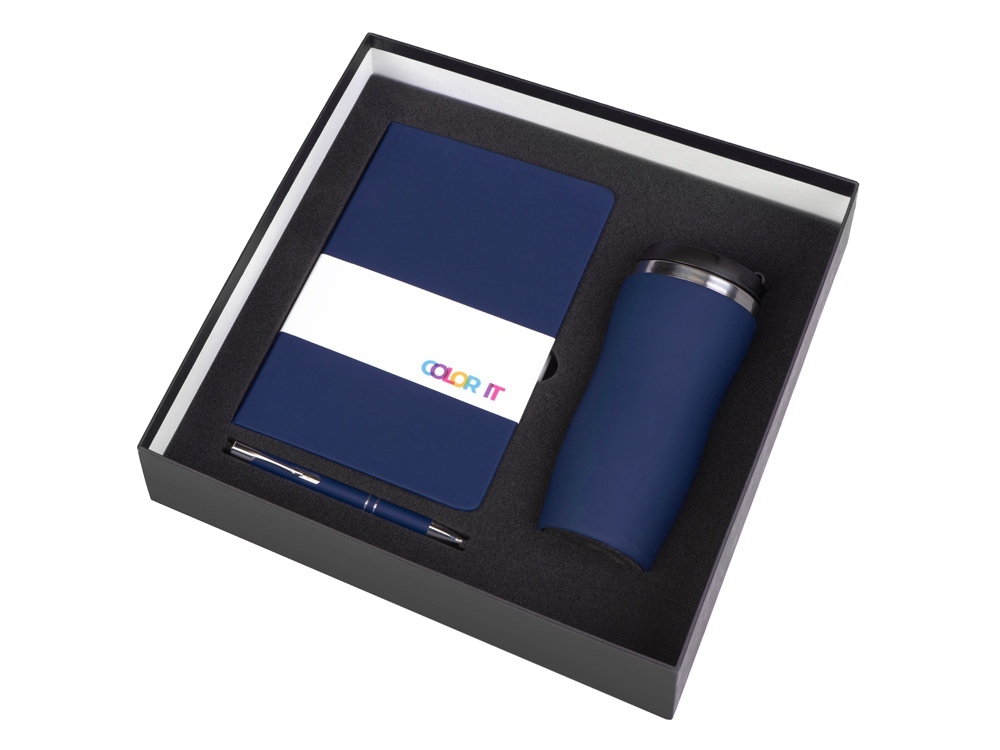 Color It — линейка, в которую входят хиты мерча в десяти самых популярных цветах. Еще никогда собрать сет под свой брендбук не было так просто. Широкая цветовая палитра серии позволяет создать идеальный набор в едином оттенке Pantone. Все товары имеют тактильно приятное покрытие софт-тач. Сет поставляется в коробке: мы продумали все, включая подарочную упаковку, за вас — осталось нанести лого! Термокружка оснащена плотно завинчивающейся крышкой, которая исключает проливание содержимого. Откидной клапан позволяет пить, не снимая крышку. Сохранение температуры осуществляется благодаря вакуумной изоляции и двойным стенкам. Бизнес-блокнот в гибкой обложке имеет ляссе в тон обложки и среза. Бумажный блок разлинован в линейку и выполнен из бумаги, полученной из древесины из специальных восполняемых лесных ресурсов, имеет сертификат FSC. Шариковая ручка имеет сменный стержень, поэтому такой мерч прослужит дольше обычной одноразовой ручки, долго напоминая о вас клиентам. - софт-тач покрытие на всех предметах набора; - объём термокружки: 350 мл; - блокнот А5 128 листов; - ручка с необычным слайдером; - подарочная упаковка из картона, оклеенного дизайнерской бумагой уже включена в набор.