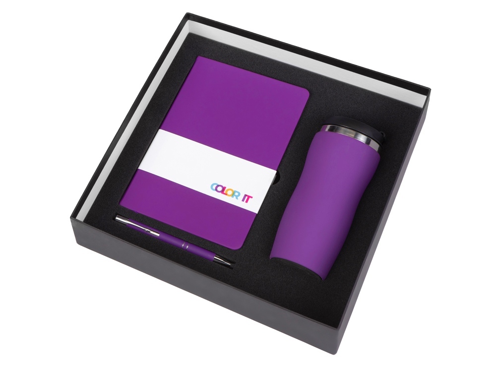 Color It — линейка, в которую входят хиты мерча в десяти самых популярных цветах. Еще никогда собрать сет под свой брендбук не было так просто. Широкая цветовая палитра серии позволяет создать идеальный набор в едином оттенке Pantone. Все товары имеют тактильно приятное покрытие софт-тач. Сет поставляется в коробке: мы продумали все, включая подарочную упаковку, за вас — осталось нанести лого! Термокружка оснащена плотно завинчивающейся крышкой, которая исключает проливание содержимого. Откидной клапан позволяет пить, не снимая крышку. Сохранение температуры осуществляется благодаря вакуумной изоляции и двойным стенкам. Бизнес-блокнот в твёрдой обложке имеет ляссе в тон обложки. Бумажный блок разлинован в линейку и выполнен из бумаги, полученной из древесины из специальных восполняемых лесных ресурсов, имеет сертификат FSC. Шариковая ручка имеет сменный стержень, поэтому такой мерч прослужит дольше обычной одноразовой ручки, долго напоминая о вас клиентам. - софт-тач покрытие на всех предметах набора; - объём термокружки: 350 мл; - блокнот А5 128 листов; - ручка с необычным слайдером; - подарочная упаковка из картона, оклеенного дизайнерской бумагой уже включена в набор.