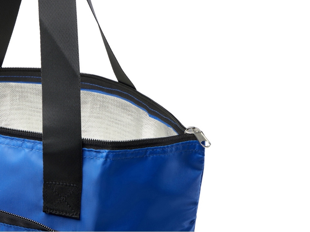 Эта легкая, но прочная сумка-холодильник, созданная для удобства и практичности, легко складывается в компактный чехол с петлей для подвешивания или переноски, что делает ее идеальным вариантом для пикников, походов за продуктами или приключений на свежем воздухе. Основное отделение на молнии с алюминиевой фольгой, открытый передний карман и две длинные ручки из качественного гладкого тканого материала. Изготовлен из переработанного полиэстера без содержания ПВХ. Объем: 15 литр. GRS certified recycled polyester.
