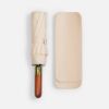 - Деревянная прямая ручка с кнопкой открытия и закрытия зонта