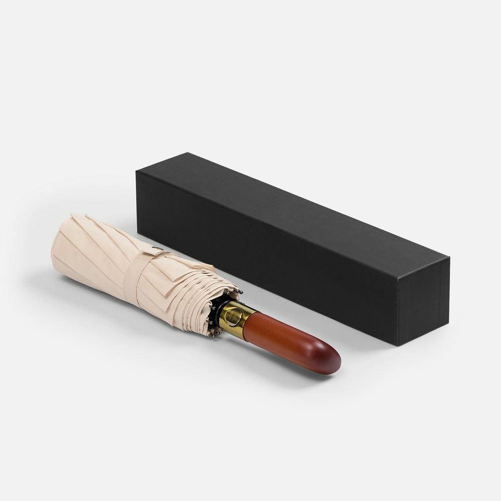 Автоматический механизм позволяет раскрыться за секунду. Плотная ткань купола обеспечивает высокую прочность и устойчивость к разрывам, при этом оставаясь легкой. А ручка из натурального дерева обеспечивает комфортный захват и добавляет зонту благородности.