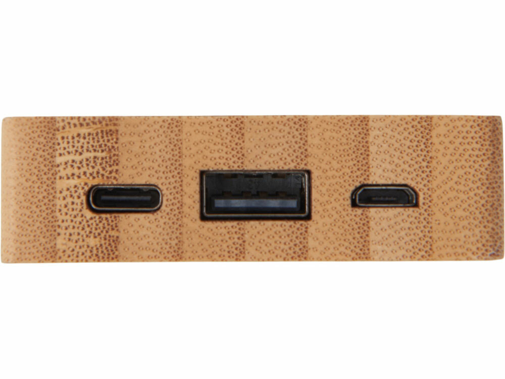 Компактный и стильный внешний аккумулятор ёмкостью 5 000 мАч — идеальный спутник для повседневных дел и коротких поездок. Его корпус сочетает в себе натуральный бамбук и переработанный ABS-пластик, что делает устройство не только более экологичным, но и визуально премиальным. Особый шарм ему придаёт встроенная панель с белой подсветкой с возможностью нанесения логотипа — ваш бренд или инициалы мягко засветятся в темноте, привлекая внимание и подчеркивая индивидуальность. Это не просто power bank — это экосознательный аксессуар, который заряжает ваши гаджеты и вдохновляет окружающих. - Компактный — 5 000 мАч в стильном корпусе для зарядки смартфона в дороге - Экологичный материал — натуральный бамбук + переработанный ABS-пластик - Логотип с подсветкой — ваш бренд мягко светится в темноте - Идеальный подарок — для клиентов, партнёров или сотрудников, кто ценит стиль и экологию