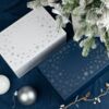 Подарочная коробка Snowlace с новогодним паттерном станет стильным дополнением к праздничному презенту. Коробка выполнена из переплетного картона толщиной 1,5 мм, кашированного бумагой с тиснением серебристой фольгой.