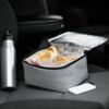 Термоизоляционный слой из фольги помогает сохранять температуру содержимого до 4 часов без дополнительного подогрева. Система подогрева, работающая от внешнего аккумулятора, позволяет увеличить это время еще на 2 часа.