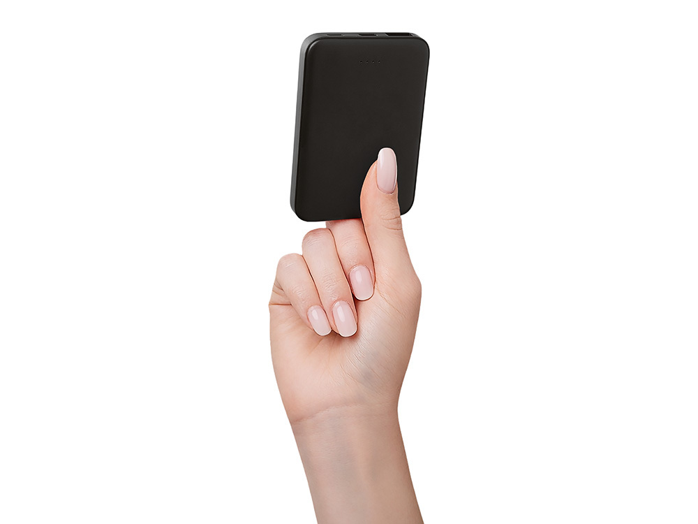 Стильный, тонкий и практичный — этот 5000 мАч повербанк создан для тех, кто ценит мобильность и универсальность. Идеальный корпоративный подарок для клиентов, партнёров и сотрудников, которые всегда в движении! Совместим со всеми смартфонами, имеется двунаправленный USB-C и дополнительное удобство - входной разъем Lightning. Разъемы USB-C и USB-A обеспечивают одновременную зарядку двух устройств. Благодаря мини размерам 91.5*62* мм и лёгкому весу (всего 102 г) легко помещается даже в карман рубашки или кошелёк. Лаконичная матовая поверхность выгодно подчеркнет логотип, а надёжная система защиты гарантирует безопасность при каждой зарядке. Поставляется в продуманной выдвижной упаковке с быстрым и эффектным открытием. - Два выхода USB-C и USB-A — заряжайте любые совместимые устройства - Два входа — заряжайте сам повербанк как от USB-C, так и от Lightning — идеально для владельцев iPhone и Android. - Компактный и лёгкий — всего 12,5 мм в толщину и 102 г веса! Легко носить в кармане или кошельке - Матовый корпус — отлично смотрится с корпоративным логотипом. - Надёжная защита — защита от перегрева, перезаряда, перенапряжения и короткого замыкания для полной безопасности.