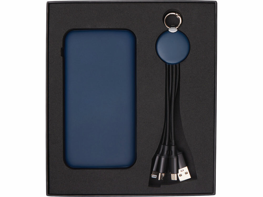 Практичный и стильный набор для зарядки в дороге: внешний аккумулятор на 10 000 мА·ч и универсальный кабель с тремя разъёмами (Micro USB, Lightning, USB Type-C). Оба элемента комплекта оснащены подсветкой логотипа — ваш бренд всегда на виду, даже в темноте. Повербанк обеспечивает 2–3 полных заряда смартфона и оснащён двумя выходами (USB-A и USB-C) для одновременной зарядки двух устройств. Поставляется в прочной подарочной коробке с шубером — идеальное решение для корпоративных подарков. • Подсветка логотипа на повербанке и кабеле — ваш бренд заметен даже в темноте. • Универсальный кабель «3 в 1» — подходит для всех популярных устройств. • Ёмкость 10 000 мА·ч — хватает на 2–3 полных заряда смартфона. • Два выхода (USB-A + USB-C) — заряжайте два устройства одновременно. • Премиальная упаковка — качественная коробка с шубером и мягким EVA ложементом.