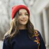 Объемная шапка из толстой пряжи.