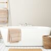 Пышная рельефная структура создает эффект роскошного спа-ухода и быстро впитывает влагу благодаря расположенным пучками петлям, а изящная полоса из стриженных петель с эффектом велюра добавляет ему мягкости и элегантности. Практичный гладкий бордюр станет идеальным холстом для нанесения символики и позволит создать уникальный персональный подарок.