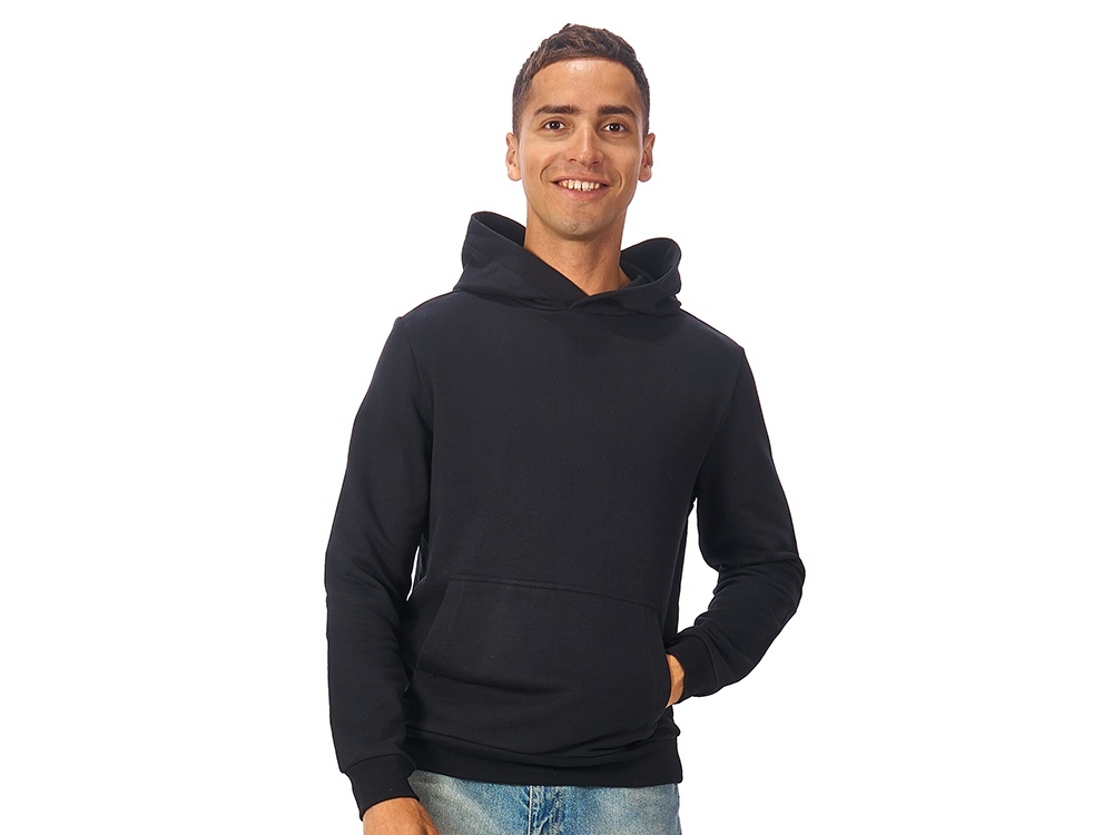 Толстовка с капюшоном (худи) из плотного хлопкового 3х ниточного футера. В капюшоне подкладка в тон, а горловина спинки дополнительно укреплена тесьмой с выделкой «елочка». Капюшон без шнурков – ничего не отвлекает от вашего брендирования. Манжеты и низ изделия отделаны рибом 2х2. Глубокий комфортный карман кенгуру на полочке. Полотно из утяжеленного хлопкового футера внутри с петельками без начеса. Комфортная модель как для промо мероприятий, так и для повседневной жизни.