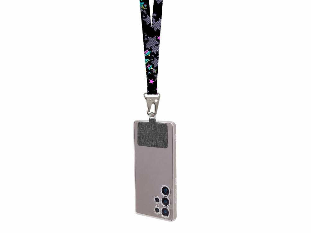 Ланъярд 2,5 см под сублимацию с большим карабином, замком обрыва и большим держателем для телефона из ПЭ в ассортименте цветов, материалов и моделей