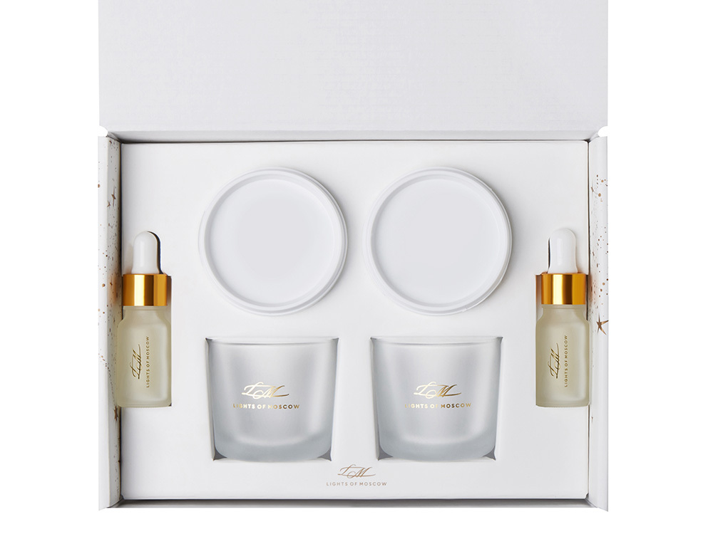 Уникальный набор для изготовления ароматических свечей станет приятным подарком и погрузит в увлекательный процесс. Набор выполнен в подарочной коробке с ложементом, в него входят все необходимые компоненты и подробная инструкция. Откройте для себя удивительный мир ароматов с Lights of Moscow! Вы сможете создать две невероятные композиции, которые точно понравятся Вам и Вашим близким! Условия хранения: — Свечи: +18…+24 °C, вдали от источников тепла, сквозняков и прямых солнечных лучей. — Рекомендуемая влажность — не более 50%. — Избегайте длительного воздействия яркого света. В комплекте: Подарочная брендированная коробка с ложементом - 1 шт. Стакан стеклянный матовый с тиснением логотипа LM 100 мл - 2 шт. Контейнер с соевым воском – 2 шт. Флакон стеклянный матовый c тиснением логотипа LM с ароматической отдушкой – 2 шт. Деревянный фитиль с держателем – 1 шт. Хлопковый фитиль с держателем - 1 шт. Наклейка для крепления фитиля - 2 шт. Палочка для перемешивания - 2 шт. Салфетка - 1 шт. Перчатка - 1 шт. Открытка - 1 шт. Инструкция по изготовлению ароматических свечей – 1 шт.