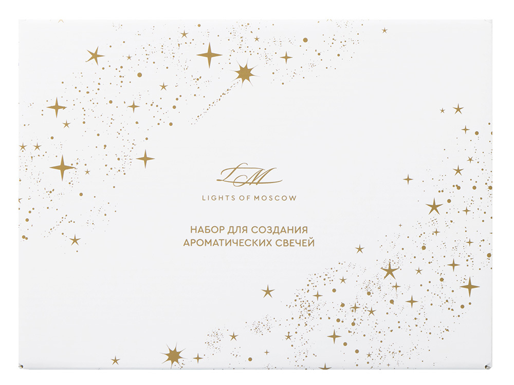 Уникальный набор для изготовления ароматических свечей станет приятным подарком и погрузит в увлекательный процесс. Набор выполнен в подарочной коробке с ложементом, в него входят все необходимые компоненты и подробная инструкция. Откройте для себя удивительный мир ароматов с Lights of Moscow! Вы сможете создать две невероятные композиции, которые точно понравятся Вам и Вашим близким! Условия хранения: — Свечи: +18…+24 °C, вдали от источников тепла, сквозняков и прямых солнечных лучей. — Рекомендуемая влажность — не более 50%. — Избегайте длительного воздействия яркого света. В комплекте: Подарочная брендированная коробка с ложементом - 1 шт. Стакан стеклянный матовый с тиснением логотипа LM 100 мл - 2 шт. Контейнер с соевым воском – 2 шт. Флакон стеклянный матовый c тиснением логотипа LM с ароматической отдушкой – 2 шт. Деревянный фитиль с держателем – 1 шт. Хлопковый фитиль с держателем - 1 шт. Наклейка для крепления фитиля - 2 шт. Палочка для перемешивания - 2 шт. Салфетка - 1 шт. Перчатка - 1 шт. Открытка - 1 шт. Инструкция по изготовлению ароматических свечей – 1 шт.