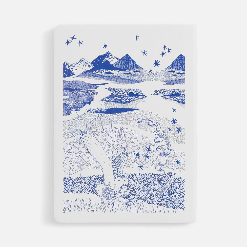 Подарочная упаковка и блокнот украшены чарующим детализированным изображением с совами на фоне бескрайнего горного пейзажа. Мудрые птицы несут на лентах важные послания с заветами на будущий год, а тончайшие линии выверенного рисунка создают неповторимое полотно северной сказки. Оттеняют магию Севера белоснежные шапка и шарф, которые подарят ощущение чистого зимнего утра и непередаваемого комфорта.