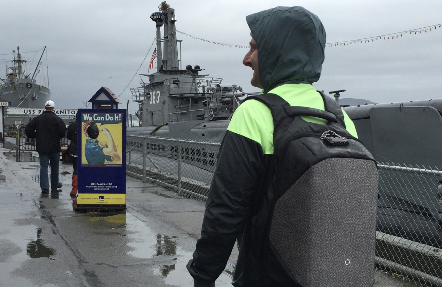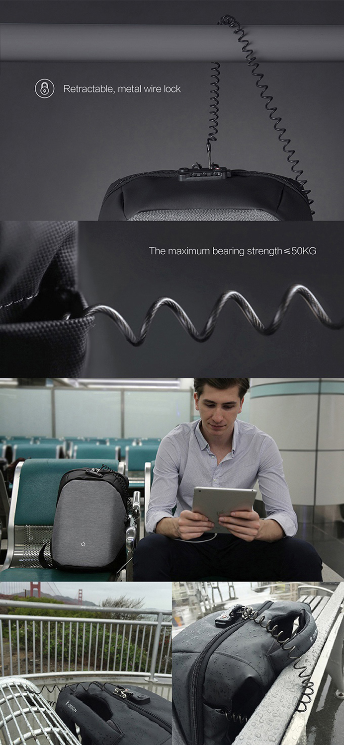 Вместительный рюкзак для путешественников ClickPack Pro из комбинации серого и черного цветов, обладатель премий Good Design Award 2017, Red Dot Design Award 2018, iF Design Award 2018, CMF Design Award, China Red Star Design Award, International Design Excellence Award, Upstyle Award 2018. Размер рюкзака 46х34х16 см, объем 17,3 л, вес 1310 гр. Сделан из высокопрочного устойчивого к порезам и трению водоотталкивающего материала многослойного плетения из разных типов ткани: нейлон, полиэстер и стекловолокно. Не требует специального ухода. Конструкция достаточно жесткая, не деформируется. Детально продуманная организация отделений позволяет грамотно распределить вес. Самые тяжелые предметы располагаются ближе к спине, например, в отделении размером 34х26х3 см для ноутбука диагональю до 15,6” и в кармане размером 19х25 см для планшета диагональю до 10”. Благодаря плотным перегородкам ноутбук и планшет надежно фиксируются и не перемещаются при ходьбе. Специальная анатомическая конструкция и вентилируемая мягкая спинка снижают нагрузку на плечи и спину, вес рюкзака воспринимается на 20-25% легче, чем при использовании стандартных моделей рюкзаков. Конструкция рюкзака позволяет раскрыть его на 180°, чтобы аккуратно уложить в рюкзак много различных предметов. Дополнительно в основном отделении расположены еще 9 карманов различного функционала. 7 открытых карманов под ручки и различные мелочи, 2 кармана на молниях размерами 8х18 см и 12х25 см, в который можно поместить powerbank, т к в него приходит USB-кабель (600 мм, 0,5-0,7 А, 5В), соединенный с портом на внешней стороне рюкзака для легкого подключения к смартфону. Это оригинальная запатентованная система зарядки K EasyCharging 1.0 с помощью USB-порта, расположенного в борту рюкзака, и кабеля, идущего к powerbank, что делает мобильную зарядку более удобной. В комплекте идут 2 органайзера для туалетных принадлежностей и электронных аксессуаров, которые можно зафиксировать внутри рюкзака на липучках, и специальный тканевый чехол с RFID-защитой размером 13х19,5 см. В сильный дождь на рюкзак можно одеть специальный непромокаемый чехол, который защитит его содержимое даже под ливнем или от брызг при поездке на велосипеде или мотоцикле. Рюкзак закрывается на молнию YKK, которую можно зафиксировать с помощью кодового замка TSA007 с функцией таможенного досмотра. Широкие и прочные лямки крепятся к небольшому тканевому борту, что позволяет рюкзаку как бы обхватывать вашу спину. В одном из бортов расположен USB-порт, а в другом - чехол для зонта или бутылки с водой, который при использовании фиксируется специальным креплением. На правой лямке рюкзака находится easy access карман размером 12х6 см на молнии, на левой - открытый карман 10х5 см. На внешней стороне рюкзака в стыке серого и черного цветов спрятался треугольный карман на молнии размером 16х9 см с застежкой фастекс для ключей, которая позволяет вам легко отстегнуть/пристегнуть ключи. На спинке рюкзака расположен внешний потайной карман размером 15х29 см на молнии. Для его защиты достаточно того, что он вплотную прилегает к вашей спине и вытащить что-то из него без снятия рюкзака невозможно. В дополнение к вышеперечисленным средствам защиты рюкзак ClickPack Pro оснащен стальным тросом, которым можно обхватить неподвижный предмет и затем зафиксировать в кодовом замке. Сверху расположена ручка из полиуретана, за которую при необходимости удобно нести рюкзак в руках или закрепить 