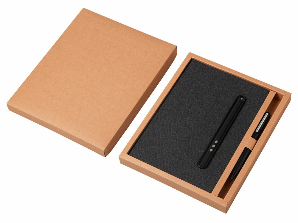 Набор блокнот А5 с магнитным держателем для ручки и подставкой для телефона и металлической шариковой ручкой "NotaBene", черный в ассортименте цветов, материалов и моделей