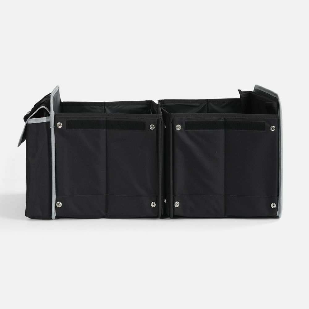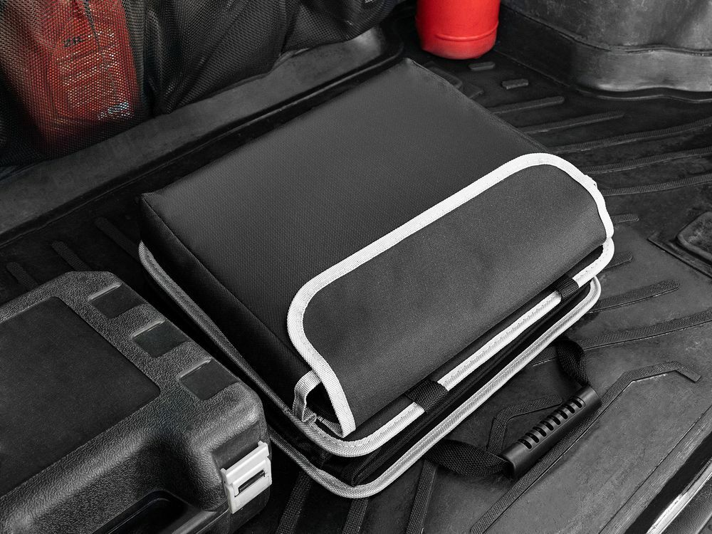 Органайзер состоит из трех основных отсеков, бокового кармана с клапаном и фронтальных карманов из сетки, что позволяет удобно хранить самые разные предметы: бутылки, сумки, инструменты, продукты и аксессуары. Также в комплект входит сумка-холодильник с водонепроницаемой подкладкой, которую можно вставить в одно из отделений, использовать отдельно, или сложить и убрать в боковой карман органайзера, когда она не нужна.