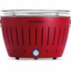 Гриль оснащен встроенным вентилятором с питанием от аккумулятора или батареек, обеспечивающим подачу свежего воздуха к углю. В результате угли имеют постоянный доступ к кислороду, что обеспечивает быстрое и практически бездымное разжигание гриля.