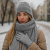 Комплект выполнен из мягкого трикотажа, что делает его особенно комфортным в носке. Вязаная шапка рибом 1х1 плотно и удобно садится по голове, сохраняя тепло и подчеркивая лаконичный стиль. Шарф из такого же материала и с аналогичной вязкой рибом 1х1 легко драпируется, позволяя носить его как свободно, так и плотно укутываясь — в зависимости от погоды и настроения. Вязаные перчатки из мягкой акриловой пряжи, также связаны резинкой 1х1. Они не только защищают от холода, но и оснащены функцией "тачскрин" на большом и указательном пальце, благодаря чему пользоваться смартфоном удобно даже на улице. Вместе шапка, шарф и перчатки создают практичный и универсальный комплект Nordend — теплый, удобный и идеально подходящий для холодного сезона.