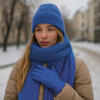 Комплект выполнен из мягкого трикотажа, что делает его особенно комфортным в носке. Вязаная шапка рибом 1х1 плотно и удобно садится по голове, сохраняя тепло и подчеркивая лаконичный стиль. Шарф из такого же материала и с аналогичной вязкой рибом 1х1 легко драпируется, позволяя носить его как свободно, так и плотно укутываясь — в зависимости от погоды и настроения. Вязаные перчатки из мягкой акриловой пряжи, также связаны резинкой 1х1. Они не только защищают от холода, но и оснащены функцией "тачскрин" на большом и указательном пальце, благодаря чему пользоваться смартфоном удобно даже на улице. Вместе шапка, шарф и перчатки создают практичный и универсальный комплект Nordend — теплый, удобный и идеально подходящий для холодного сезона.