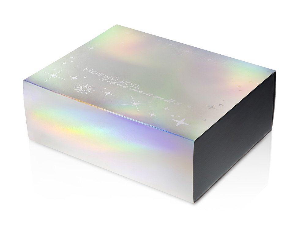 Упаковка — это первое впечатление о подарке. В преддверии Нового года особенно важно создать атмосферу праздника — стильная и аккуратно выполненная коробка с голографическим шубером сразу вызывает ощущение заботы, уюта и волшебного ожидания. Подарочная коробка из прочного микрогофрокартона, кашированная бумагой с матовой ламинацией, выглядит элегантно и надёжно защищает содержимое. Новогодний голографический шубер с мерцающими серебристыми переливами придаёт ей праздничный блеск и делает каждый подарок по-настоящему особенным. В такую коробку можно поместить сувениры, кружку, баночку мёда или варенья, а добавив декоративный наполнитель — подчеркнуть изысканность и тёплое новогоднее настроение. Коробка отлично подходит под нанесение логотипа или фирменного дизайна, чтобы ваш подарок не только порадовал получателя, но и напомнил о компании или событии ещё долго после праздников.