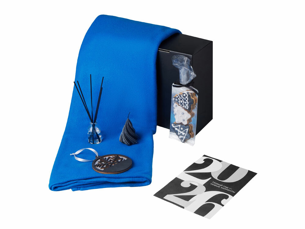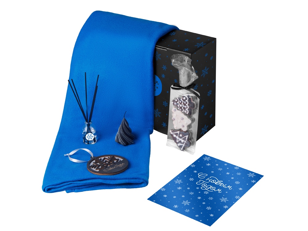 Подарочный набор с пледом, свечой и диффузором, синий в ассортименте цветов, материалов и моделей