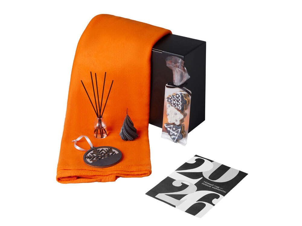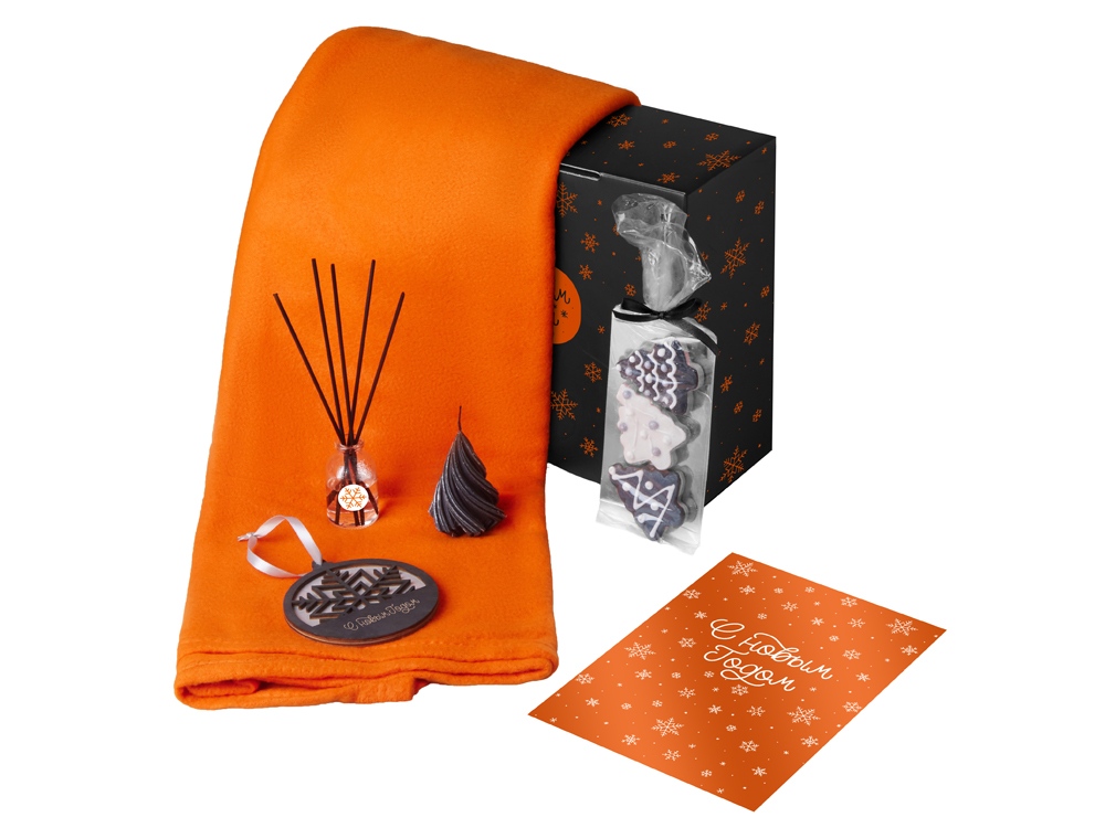 Подарочный набор с пледом, свечой и диффузором, оранжевый в ассортименте цветов, материалов и моделей
