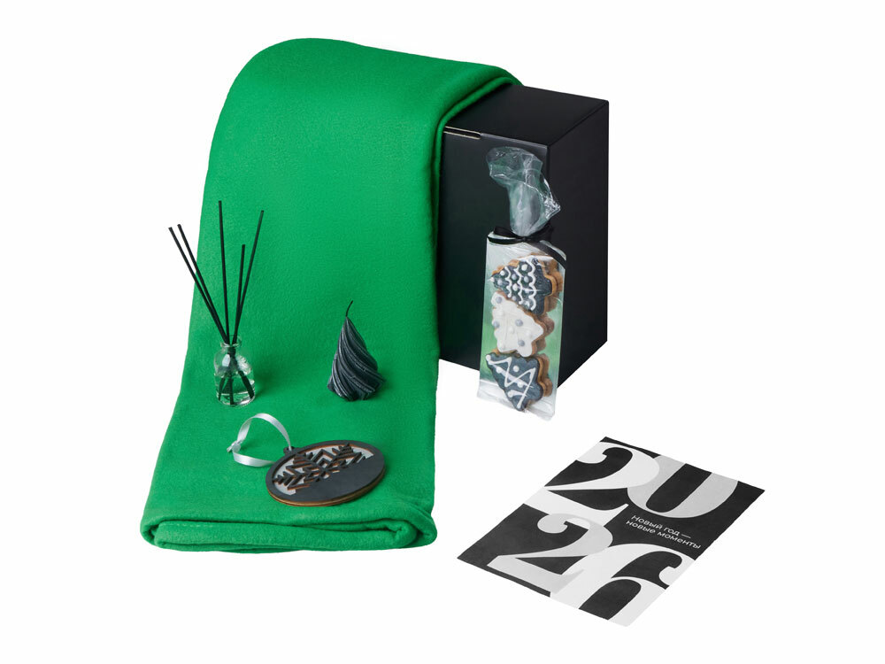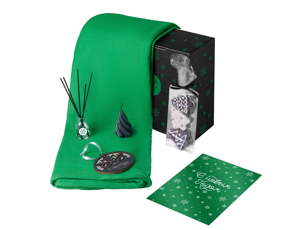 Подарочный набор с пледом, свечой и диффузором, зеленый в ассортименте цветов, материалов и моделей