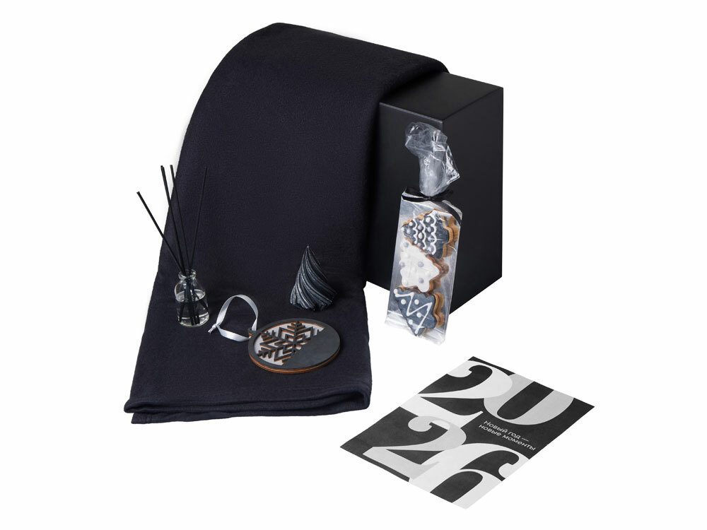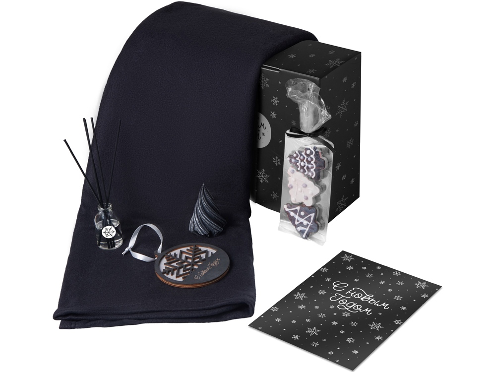 Подарочный набор с пледом, свечой и диффузором, черный в ассортименте цветов, материалов и моделей