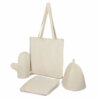 Создайте уют в парной: женский холщовый килт, шапка и рукавица — всё необходимое для отдыха, аккуратно сложено в хлопковый шоппер.