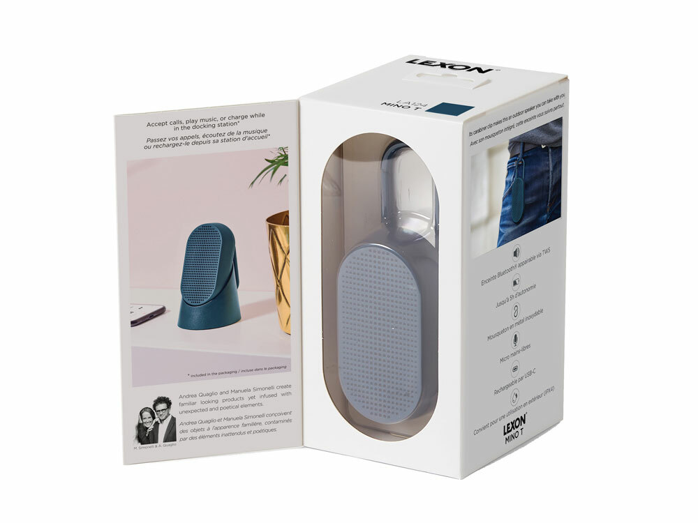 Mino T — это универсальная Bluetooth-колонка, созданная для путешествий. Карабин позволяет легко прикрепить её к сумке или велосипеду. Благодаря элегантному дизайну она гармонично впишется в интерьер, став современным элементом. Оснащённая пассивной басовой системой, Mino T обеспечивает качественное прослушивание, гарантируя сбалансированный и насыщенный звук в дороге. Не беспокойтесь о дожде: сверхпрочное покрытие делает её водонепроницаемой. Наслаждайтесь до 5 часов автономной работы в любых приключениях. Отвечайте на звонки, слушайте музыку или заряжайте колонку через кабель USB-C, установив её на док-станцию. - Bluetooth®-динамик со встроенным карабином - Совместимость с технологией TWS - Водонепроницаемость IPX4 - Микрофон "hands-free" - Пульт дистанционного управления для селфи - Bluetooth® 4.2 - Время работы аккумулятора: 5 ч - Время зарядки: 2 ч - Расстояние Bluetooth®: 10 м - Питание: через порт USB C, кабель в комплекте